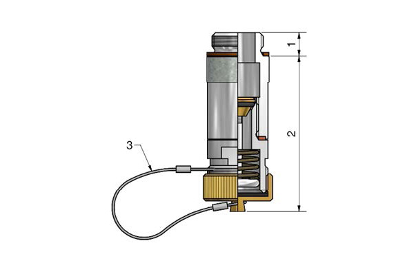 Protection cap: Thread M22x1.5 in Brass. Supplied with stainless steel retention cable. The steel cable is attached to the valve and the protection cap preventing misplacement and ensuring quick retrieval after service.