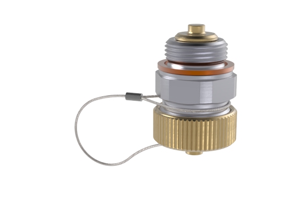 Schutzkappe: | Gewinde M26x1,5 in Messing. Lieferung mit Edelstahl‐Seil. Das Stahlseil ist am Ventil und der Schutzkappe befestigt. Es verhindert ein verlegen der Kappe und garantiert ein schnelles Auffinden bei Wartungsarbeiten. |