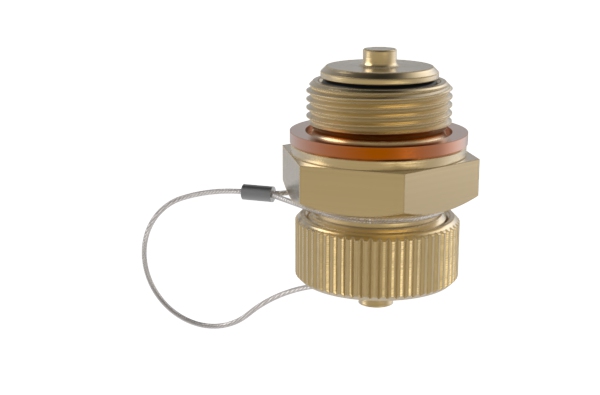Schutzkappe: | Gewinde M26x1,5 in Messing. Lieferung mit Edelstahl‐Seil. Das Stahlseil ist am Ventil und der Schutzkappe befestigt. Es verhindert ein verlegen der Kappe und garantiert ein schnelles Auffinden bei Wartungsarbeiten. |