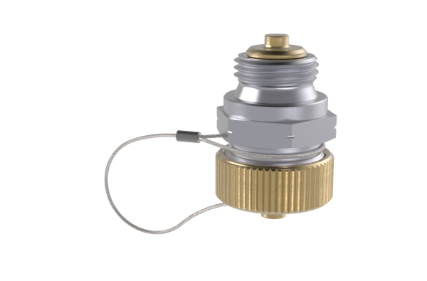 Schutzkappe: | Gewinde M26x1,5 in Messing. Lieferung mit Edelstahl‐Seil. Das Stahlseil ist am Ventil und der Schutzkappe befestigt. Es verhindert ein verlegen der Kappe und garantiert ein schnelles Auffinden bei Wartungsarbeiten. |